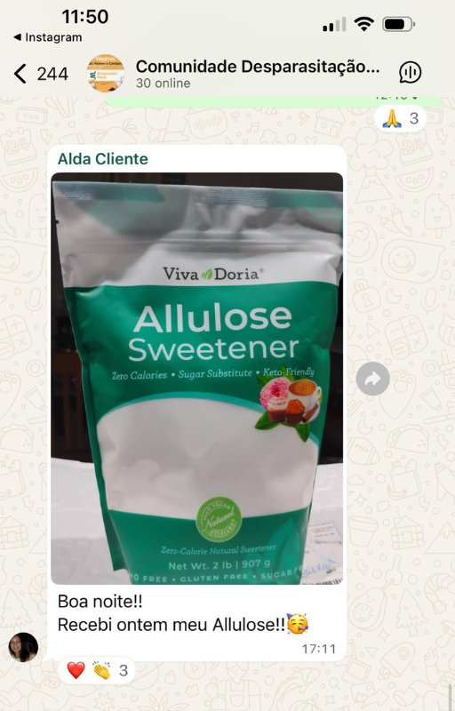 A alulose chega a 70% do mesmo sabor do açúcar, por esse motivo você nem mesmo é capaz de diferenciar os dois.